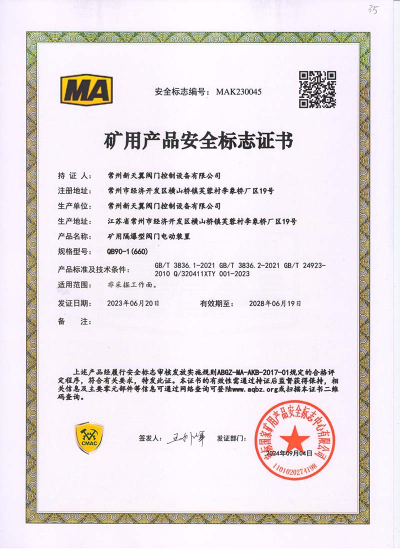 礦用產品安全標志證書QB3.5-1.25(127)